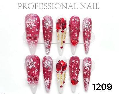 Each package comes with a set of handmade press on nails, alcohol wipe, buffer block, adhesive tabs and manicure stick.